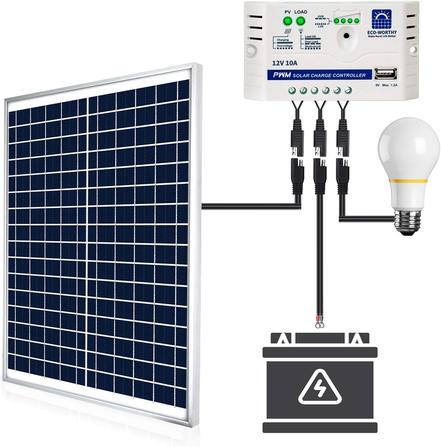 - ✓ ソーラーパネル初心者で12V太陽光発電システムの仕組みを学びたい方(コントローラー・電池付きで追加知識なしに始められる)