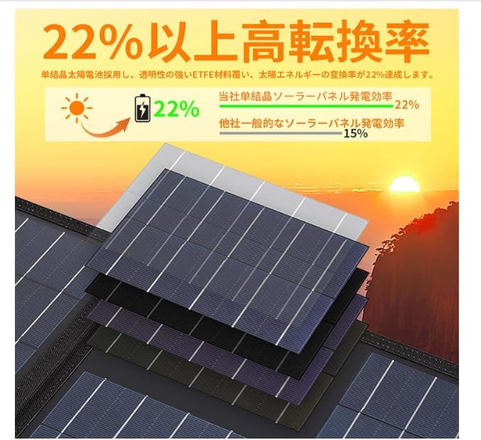 Evopow 40Wソーラーパネルの変換効率23%は他製品と比べて高いですか?
