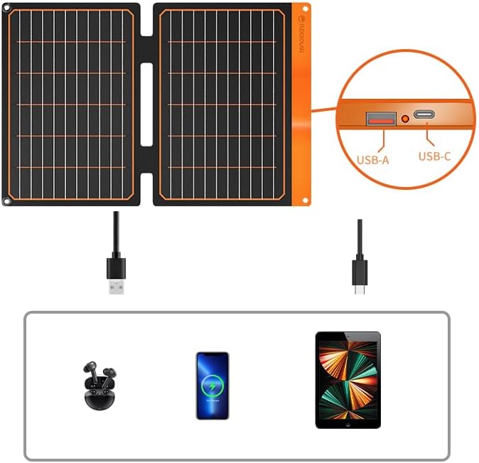 FlexSolar 20Wソーラーパネルは、わずか0.7kgという驚異的な軽さとIP67防水性能を両立した、スマートフォンやタブレットの直接充電に特化したポータブルソーラー充電器です。USB-A QC3.0とUSB-CのデュアルUSBポートを搭載し、5V出力で日光さえあればパワーバンク不要でデバイスを充電可能。防災用の非常持ち出し袋やデイキャンプでの携帯充電に最適な、超軽量・コンパクト設計のモデルです。