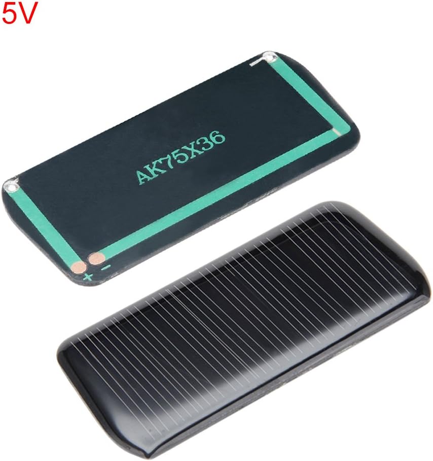 uxcell 5V 60mA多結晶ソーラーパネルは、わずか0.01kg・75×36mmという超小型サイズが最大の特徴で、電子工作やIoTデバイスへの応用に特化したミニ太陽電池パネルです。1枚あたり0.3W(5V×60mA)の出力で、低電力機器への充電やセンサー駆動など小型太陽光発電システムの構築に最適な5個セットです。