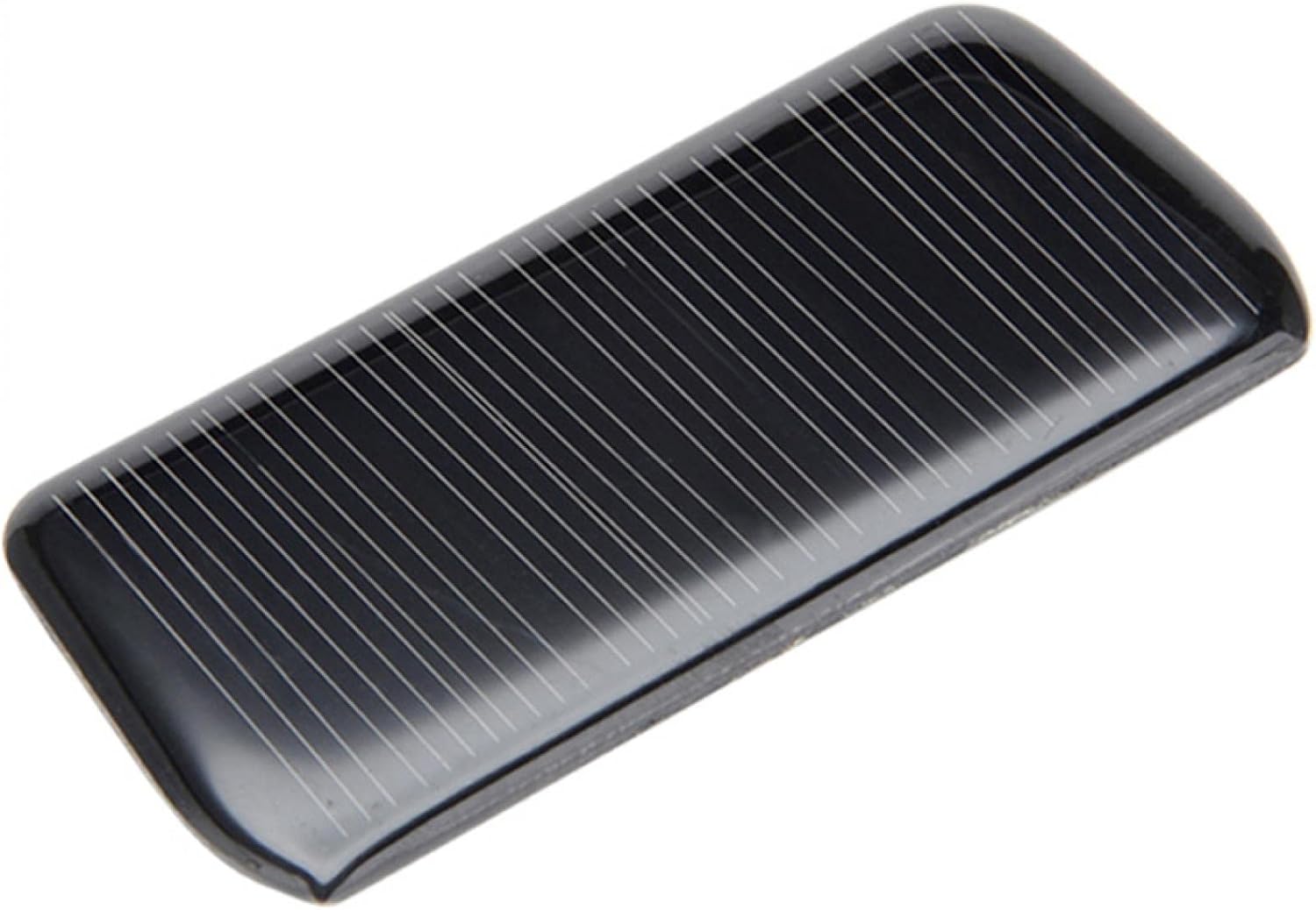 本製品は多結晶シリコンセルを採用しており、一般的に変換効率は15〜17%程度です。単結晶セル(20〜23%)に比べ効率はやや劣りますが、製造コストが低い種類のためクラス面で優位です。この小型サイズの電子工作用途では、効率差よりもコストと入手性が重視されるため、多結晶でも十分実用的です。